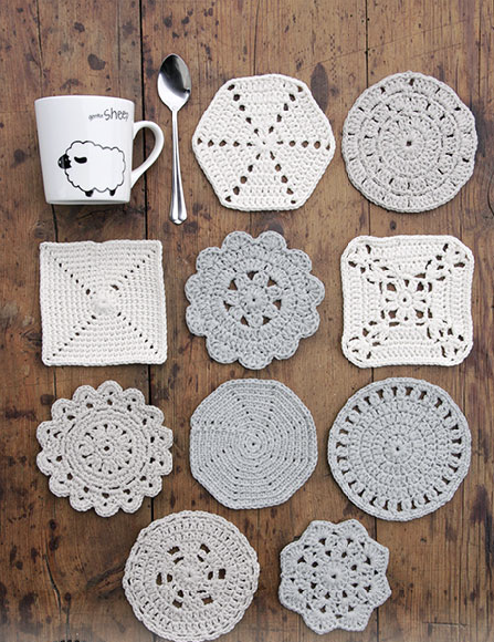 Set de 10 posavasos de crochet, diseños surtidos.
